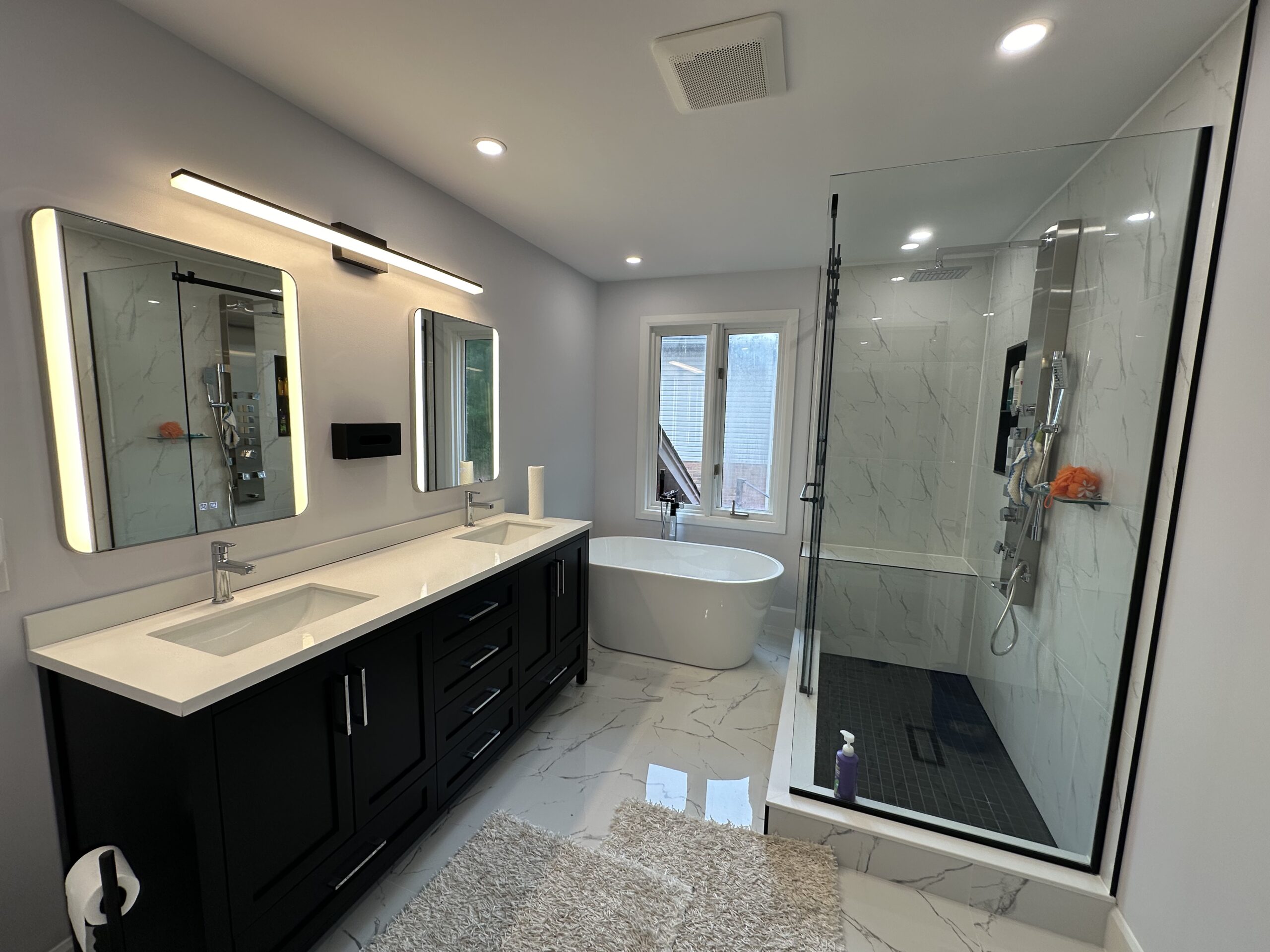 We hired Zarlas Renovations for our full Master Bathroom renovation in 2023. Adeel and his team were highly skilled and very professional. They helped coordinate the interior design and completed the work on schedule within the planned 3 weeks. They were very pleasant to work with, flexible, kept us updated on the progress and cleaned before leaving each day.